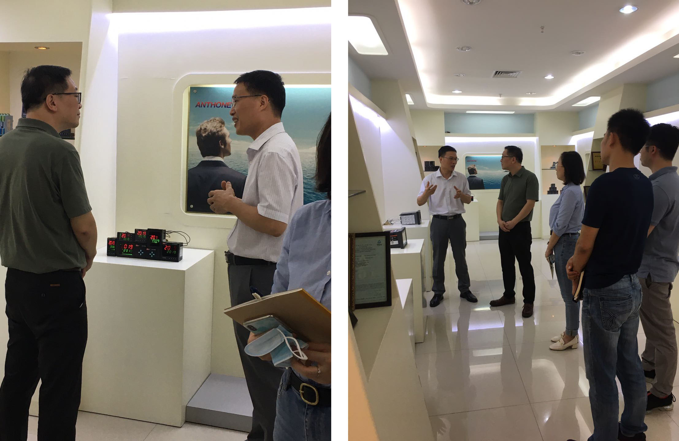首先,廈門安東電子有限公司總經(jīng)理肖國專先生陪同領(lǐng)導(dǎo)們參觀了產(chǎn)品展廳,先介紹了智能電力監(jiān)測儀的功能及用途,應(yīng)用于廈門地鐵項目及樓宇建筑項目的情況。接著介紹了觸摸屏無紙記錄儀,主要用于工業(yè)行業(yè)的溫度、壓力測量記錄,并介紹了最新研發(fā)的與互聯(lián)網(wǎng)結(jié)合的模式,可對產(chǎn)品進行遠程維護,特別是疫情期間可以不出門就能解決問題,領(lǐng)導(dǎo)們給予極大的贊許。隨后,介紹了溫控表和壓力變送器產(chǎn)品,重點提到熔噴布生產(chǎn)設(shè)備上起到的作用,結(jié)合時事需求,不斷研發(fā)與時俱進,研發(fā)就是企業(yè)的第一生命力,得到領(lǐng)導(dǎo)們的認可。